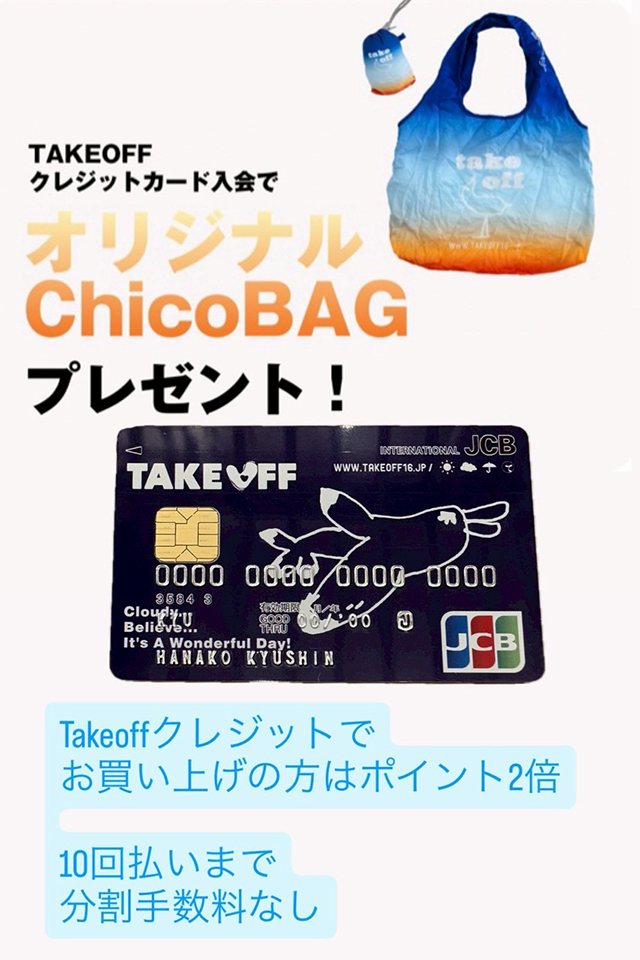テイクオフカードお支払いでポイント2倍&分割10回払い手数料無料のキャンペーンも開催中です新規お申し込みの方にオリジナルのノベルティもございます10月26日(日曜日)まで開催致しますのでお得な期間中にぜひご来店下さいませ